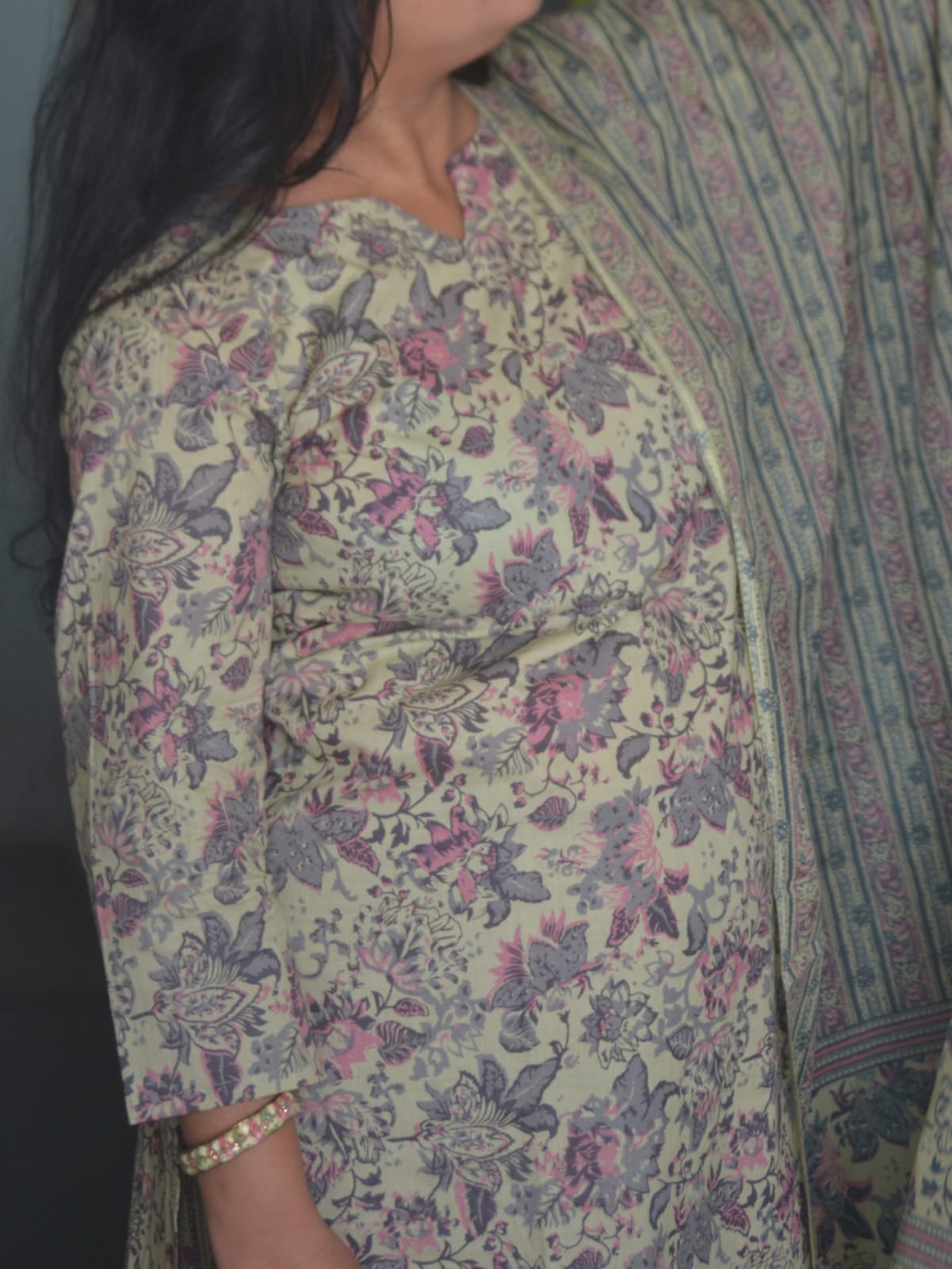 This stunning three-piece cotton kurta set showcases a vibrant Greyish that makes a bold fashion statement. Crafted from 100% premium cotton, this set offers supreme comfort and breathability, perfect for both casual wear and festive occasions. The kurta features 3/4 sleeves and a stylish boat neck with V cut while the matching bottoms provide a comfortable fit. The coordinating dupatta with its beautiful border design completes the traditional look. The set’s versatile design makes it suitable for various occasions and daily wear . The premium cotton fabric ensures comfort in various weather conditions.