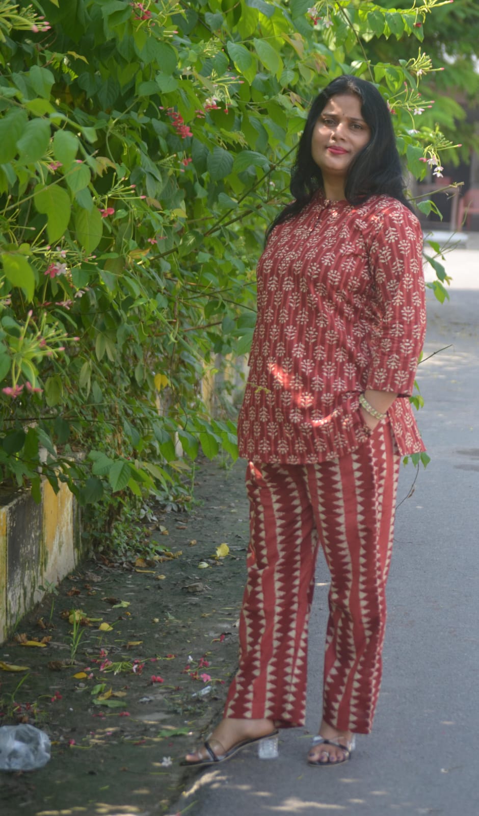 This elegant Red with Floral Print Co-ord Set has been designed keeping in mind the latest trends in contemporary casual fashion. The Top and Palazzo pant set combines ethnic with the fashion of today and makes you stand out among others when you adore it.